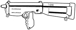The Badger is a heavy duty submachinegun designed to use conventional 9mm rounds and special high-explosive armor piercing (HEAP) rounds.