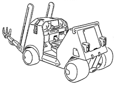 The ML-3 is a one-man missile loading forklift commonly used to arm mecha, especially Veritechs. Both forks of the lift have grasping hands to better hold and position missiles. The fork arms can move individually or simultaneously. Maximum height of reach is 2.4m. It is also used for transporting other cargo and loading.