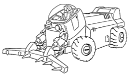 The tractor hauler is another cargo transport vehicle primarily used in fitting mecha. It is a much larger and more powerful vehicle used to load missiles into destroids, dismantle mecha, and haul and tow mecha/vehicles/debris. Its huge claw-like hands have a maximum reach of 32ft (9.8m) and can hold as much as 6 tons in one hand or 20 tons using both.