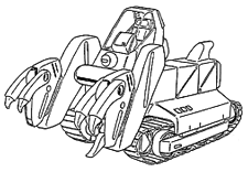 The Mining Operations Vehicle is used by the REF in mining, construction, and salvage. A variety of accessory arms can be changed with relative ease. They include shovel, drill, utility arms and others. The pilot's compartment has its own air supply and purification/circulatory system, as well as special sensors ideal for mining.