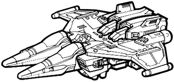 The next generation of the experimental Gamma Fighter developed by Darryl Merlyn, the VF/G-2X is a two-seater aerospace fighter with extensive e-warfare capabilities. Designed for use primarily in space, the Gamma Fighter has an unusual tandem cockpit design, with the lefthand cockpit designated for the pilot and the righthand for a dedicated e-warfare specialist (though the e-warfare cockpit does contain duplicate flight controls in case the pilot is incapacitated.