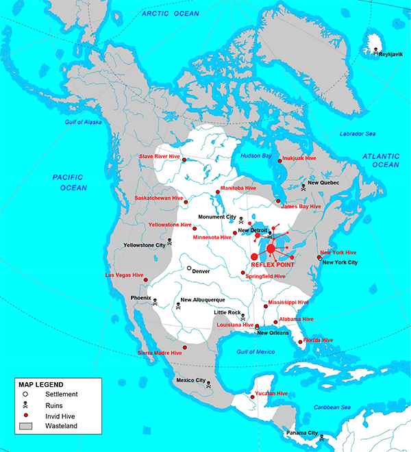 North America is the site of Reflex Point, the main base of the Invid occupation forces and their leader, the Invid Regiss. Reflex