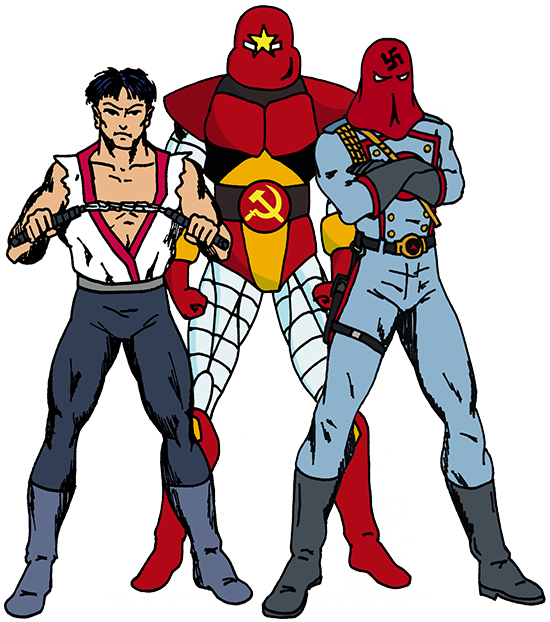 - Masked Swastika: One of the best soldiers and tacticians in Nazi Germany, the Masked Swastika (known as the Iron Swastika during the war) escaped capture after the fall of the Reich. Emerging from hiding in 1948 the Swastika formed the Allies as a means to rebuild his power base and strike back at his enemies. The Swastika remains in top physical condition and is still a deadly adversary with expertise in a variety of forms of combat. He typically no longer wears the suit of armor he while active during the war, but still carries a sword with him in addition to an automatic pistol.