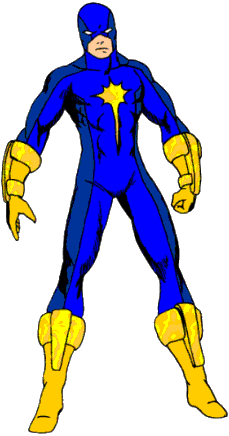 Rogatta was with the team when the wizard Mordru was awakened and stayed with them during their battle with him. After defeating Mordru, Rogatta chose to accompany the rest of Justice Inc. to Earth, anxious to see this new culture. As Rogatta, he was welcomed at New York City's Hudson University and began an exchange of knowledge with the anthropology department there. Using the hero name Goldstar he fought alongside Justice Inc. against many of their foes. Unfortunately, Rogatta's stay on Earth was a brief one, while battling the new H.I.V.E., Goldstar was apparently killed when the villain Hi-Rez destabilized his energy matrix.