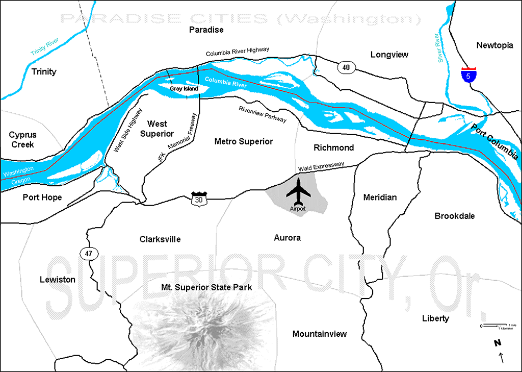 The corridor consists of the "megacity" of Superior City, Oregon and the city of Paradise, Washington, along