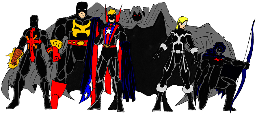 Raven discovered Phantasm through some investigation into his accident and confronted him at his Corporate Headquarters. Raven saw the advantages of being somewhat self sufficient by having their own cash source. After blackmailing his Secret ID, Phantasm joined. They took notice of superhuman activities in the San-Francisco Bay area for their next candidates. The American had been involved in a few brawls in the area but hadn't been noticed by the general populace. While helping American handle the Wrecking Crew, a young, blond speedster named Midnight Express showed up to give a hand. Raven didn't care that he'd told them he was a mutant (Val soon discovered the error of telling a minority rights activist not to include a minority in his group). Chaos and Night Breed were also in California both in seclusion having been transformed on unrelated trips to Central America. A routine background search approved the last two members and the team was formed.