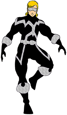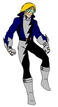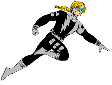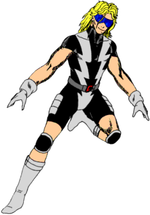 On top of his superhuman speed, Midnight Express has the ability to affect kinetic energy in his immediate vicinity. Basically, this means he can ignore Newton's Laws of Motion and do things that would have Sir Isaac spinning in his grave (a feat M.E. could in fact accomplish but its way too morbid for his tastes). Since this power affords him control over such things as his own momentum and centripetal force, it allows Midnight Express to perform such seemingly impossible stunts as coming to a dead stop from full speed in an instant, making hairpin turns at any angle without changing speed, and altering the speed and direction of nearby objects. Among the neater tricks he has learned is causing an opponent to suddenly change direction (usually to cause them to collide with a large stationary object such as a wall or the ground). Midnight Express' main stunt with his kinetic control, however, is a variant on the fastball special used by the X-Men. Express accelerates to full speed, then comes to a complete stop and transfers all of his momentum to a nearby target, usually to send an enemy very, very far away or to turn one of his more durable teammates, like Champion, into a high-speed guided missile (remember boys and girls, Midnight Express' power gives him control over the speed and direction of an object.)