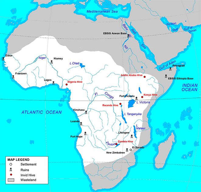 it has been largely ignored by the Invid. The few major cities, and the EBSIS military bases in Egypt and the Horn of Africa,