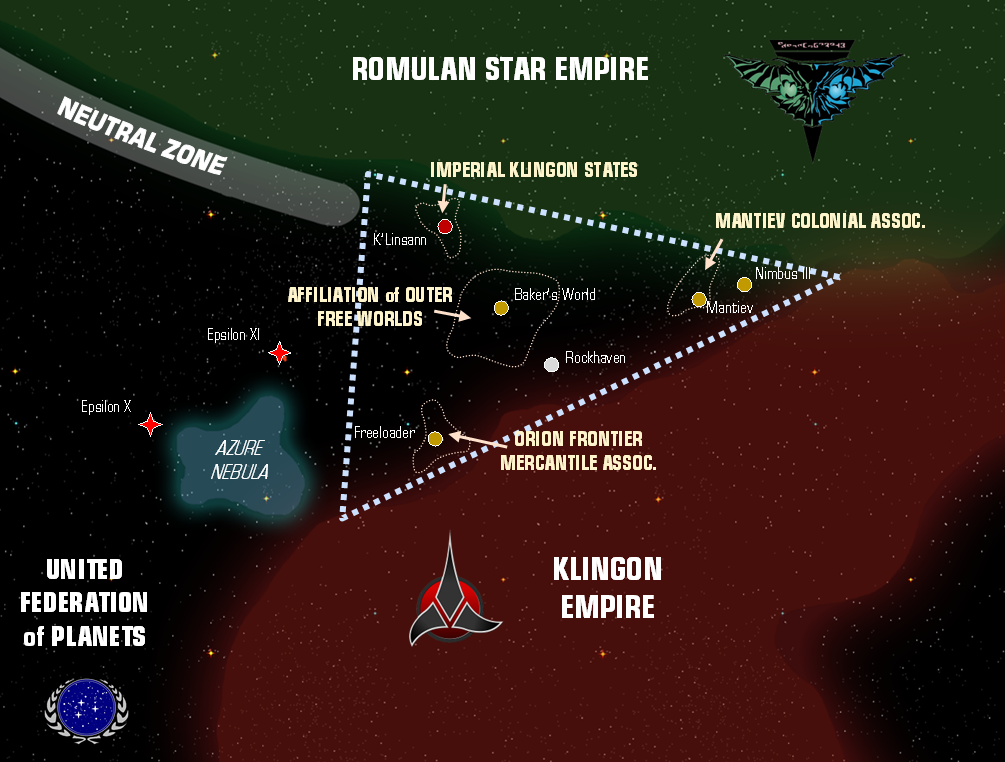 The end of the Federation-Klingon War saw another wave of colonial efforts in the Triangle, with the Orions and the already established colonies happy to provide support to the newcomers. This allowed these new colonies to establish themselves more quickly, leading to a new trade boom in the region. The three major powers that abut the Triangle have all come to realize that conquest of the region is not feasible. As such their military efforts end with the bases and outposts that form their unofficial borders with the Triangle. This has resulted in a market where anyone can make their fortune, or lose it. The Orions have a cultural headstart on this, but the Federation, Klingons, and Romulans are learning fast.
